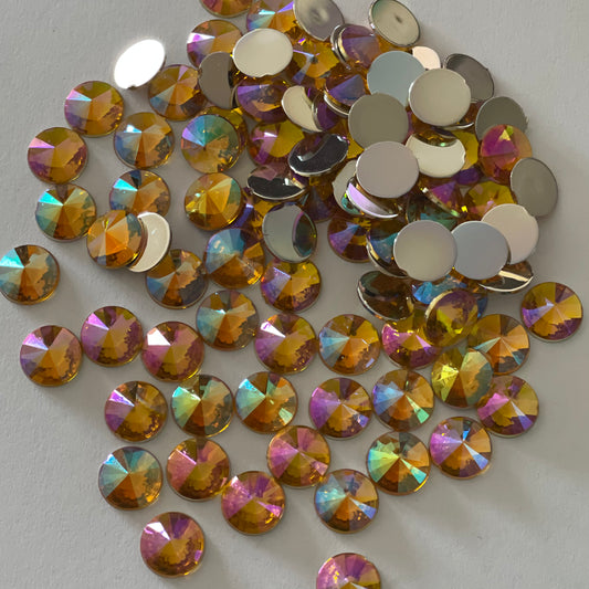 10mm, Rivoli Round - Yellow AB (Glue on)