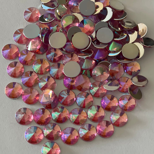 10mm, Rivoli Round - Pink AB ( Glue on)