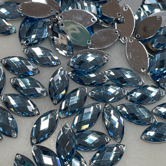 15mm, Horseeye - Aquamarine AB (Glue on)
