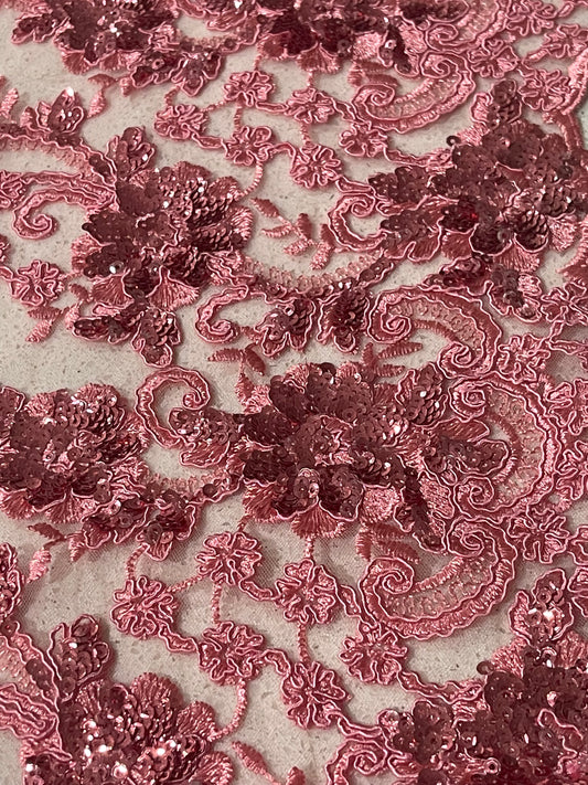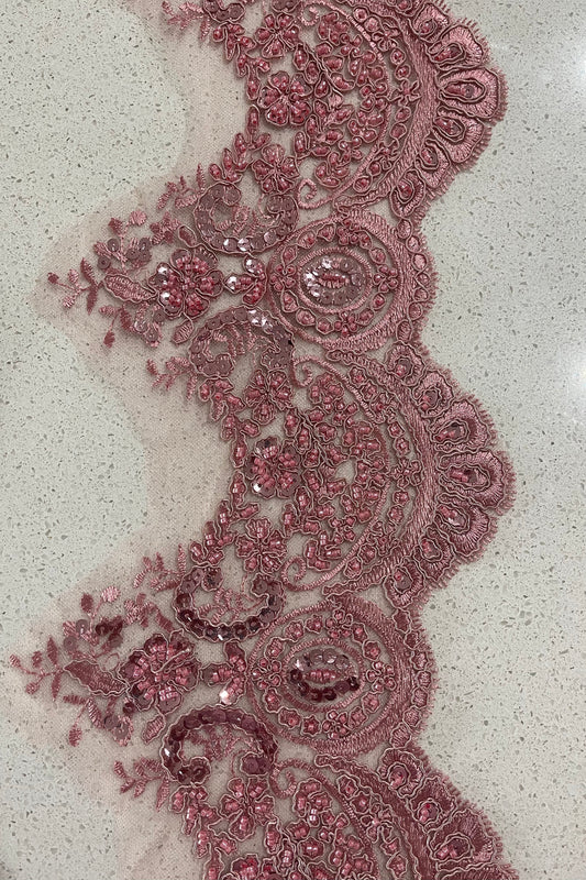 Ivy Beaded Lace Border - Dusty Pink