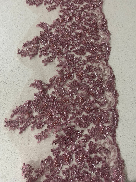 Beaded Lace Border - Dusty Pink Blush