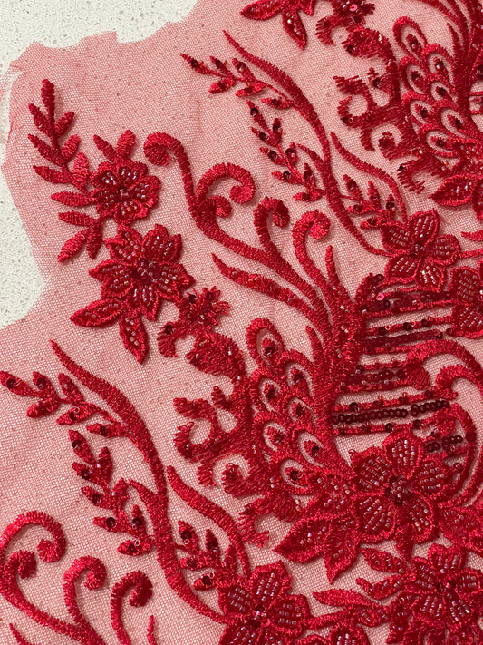 Roxanne Beaded Lace Border - Red